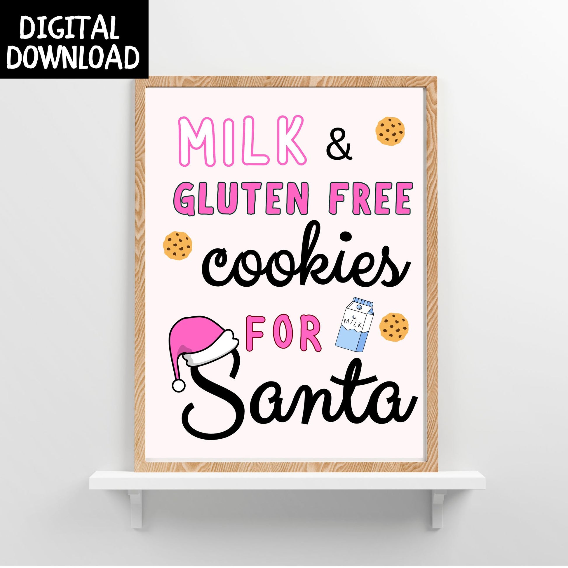 A festive, print-it-yourself holiday sign perfect for setting out milk and gluten free cookies for Santa. This 8.5x11 printable adds a cute, cozy touch to Christmas Eve traditions and makes your gluten free setup feel extra special. Ideal for families with celiac disease or gluten sensitivities.