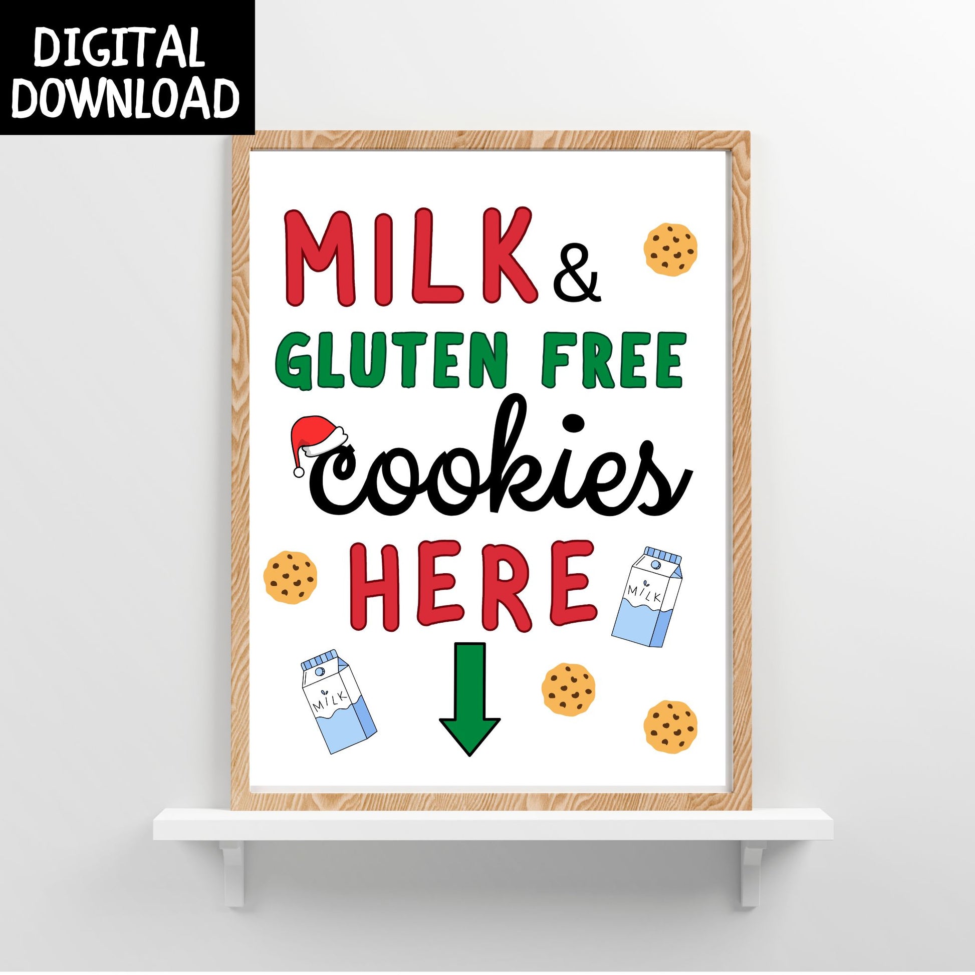 A festive, print-it-yourself holiday sign perfect for setting out milk and gluten free cookies for Santa. This 8.5x11 printable adds a cute, cozy touch to Christmas Eve traditions and makes your gluten free setup feel extra special. Ideal for families with celiac disease or gluten sensitivities.